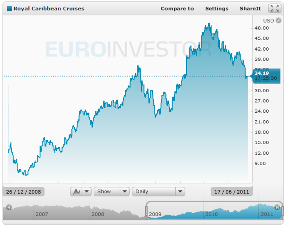 Furthermore Celebrity was about to accept a continuous stream of new vessels, the largest they had ever ordered. All these capacity increases in troubled economic times worried investors. However the shares now stand at $34.19, a remarkable investment if anyone committed.
