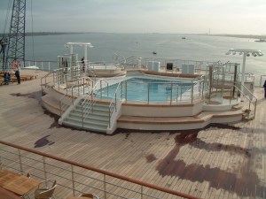 We were also visited the various dining rooms and restaurants on board including the Todd English with its great view over the stern and the pool area. I also enjoyed the promenade with its classic wooden ‘Steamer’ deck chairs, and I still want one for sitting out in the Garden! The Britannia Dining room was amazing, I have never seen anything like it.We missed the planetarium unfortunately.