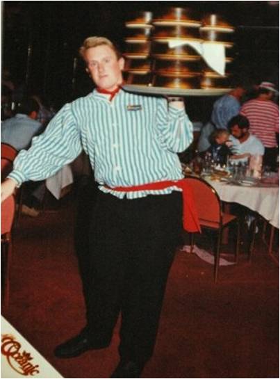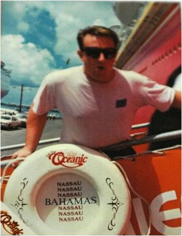 I spoke my first words to a crew member here. His name was Mark Stimpson who, was the Chief Purser. Obviously I was looking rather pale and carrying a couple of suitcases it rather gave the game away that I was a ‘Newboy’ In addition, I was wearing a Leeds United football shirt, which was a little clue. He introduced himself as Mark from Portsmouth and asked me what I would be doing. So I told him I was a waiter. That brought a bit of a sparkle to his eyes and he said ” topman! I hope you’ve left your fucking liver at home! Because you won’t need it here “. At that, he disappeared in to his office. A bit weird I thought but, he seems a bit of a lad, and having bloodshot eyes and wearing four gold stripes on his arm he definitely looked like the sort of bloke I could get on well with.