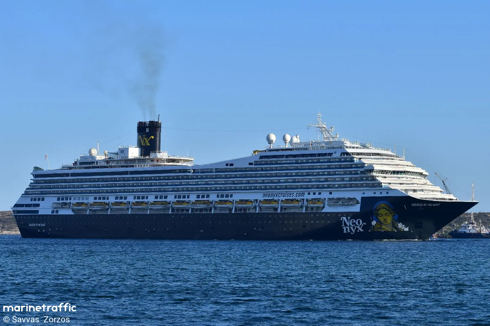 The second largest ship on this list, Goddess of the Night is 272m long with a capacity for 2700 passengers. Entering service for Costa Cruises in 2004, a sister ship of Costa Fortuna and a near sister of Carnival Sunshine, Carnival Sunrise and Carnival Radiance.