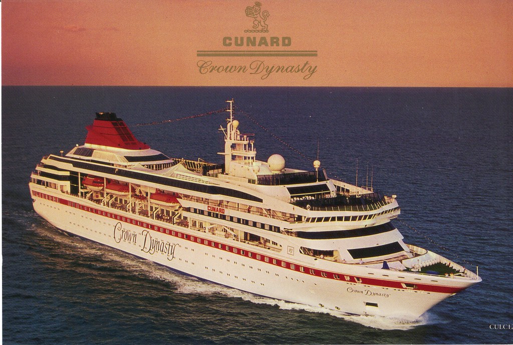 The early 90s were a time of consolidation in the cruise industry and Trafalgar House was keen for Cunard to be part of it, in 1993 Cunard expanded into river cruising with a marketing agreement for Peter Deilmann’s river cruise ships. Also in 1993 the company worked with Effjohn to market its Crown cruise line as Cunard Crown, a premium cruise product of two new ships, Crown Dynasty and Crown Jewel, as well as a much smaller Crown Monarch.