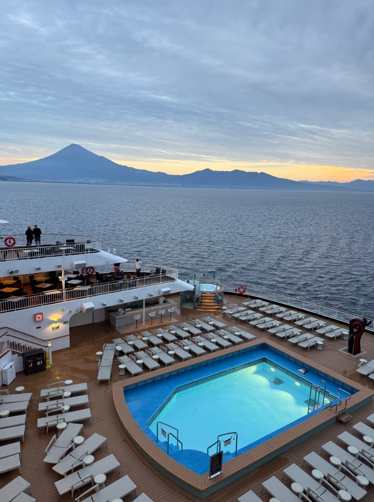 The next stop was Shimizu, Japan, which is the stop for Mount Fuji. Mount Fuji is famously hard to see with low cloud coverage on most days. So we awoke at 5am to head up on deck and make sure we could see it. Upon arrival at the port this is where we took one of the cruise line’s tours, a coach trip to see the best sites for Mount Fuji. This tour had an excellent guide and got us some spectacular views.