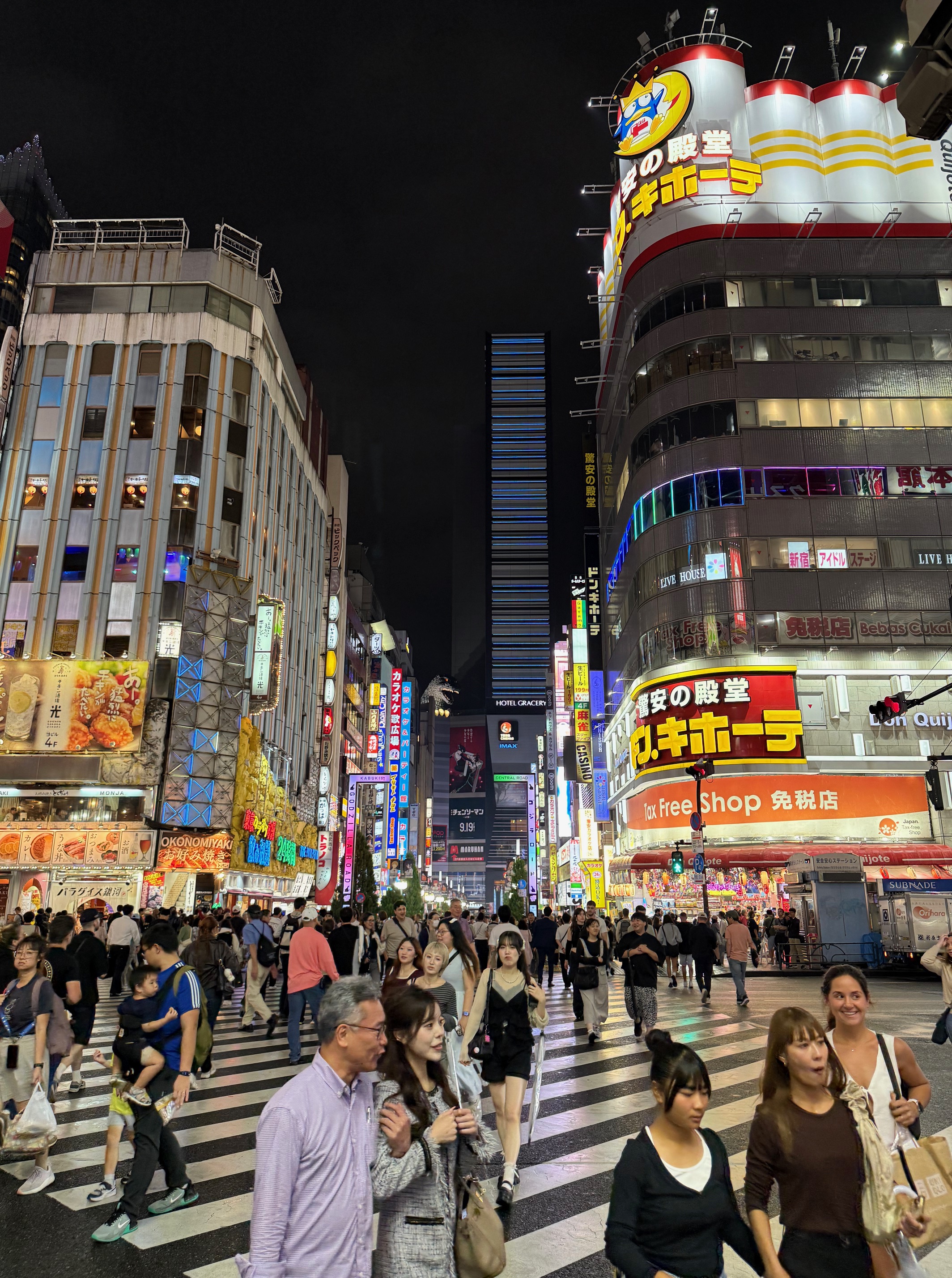 After this, we headed into Tokyo itself, it can be quite overwhelming with the size of the city and we even wanted to spend some time in Yokohama but hadn’t had the chance. We went straight to Shibuya crossing, the famous junction in Japan and walked straight across and through the neighbouring area, we stopped at an excellent restaurant for Gyozas, before heading to a rooftop to have a beer and watch the view. After this, we headed back to the ship, which took a lot longer than expected, to get changed and return to Tokyo for an evening meal and drinks. We headed to Memory Lane, which is a traditional area, of dense buildings with restaurants and bars. Here we had some food and beers before later heading to Shinjuku for a rooftop bar. The lights of Tokyo were truly amazing. We did miss the last train back to the ship, enjoying the rooftop views and drinks too much and had to get a very expensive but very comfortable taxi.